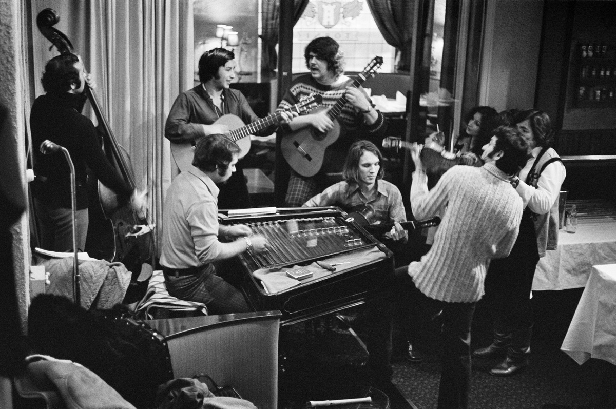 laulaja Anneli Sari sekä muita muusikoita. Kuva: Simo Rista, 1971. Lähde: Helsingin kaupunginmuseo
