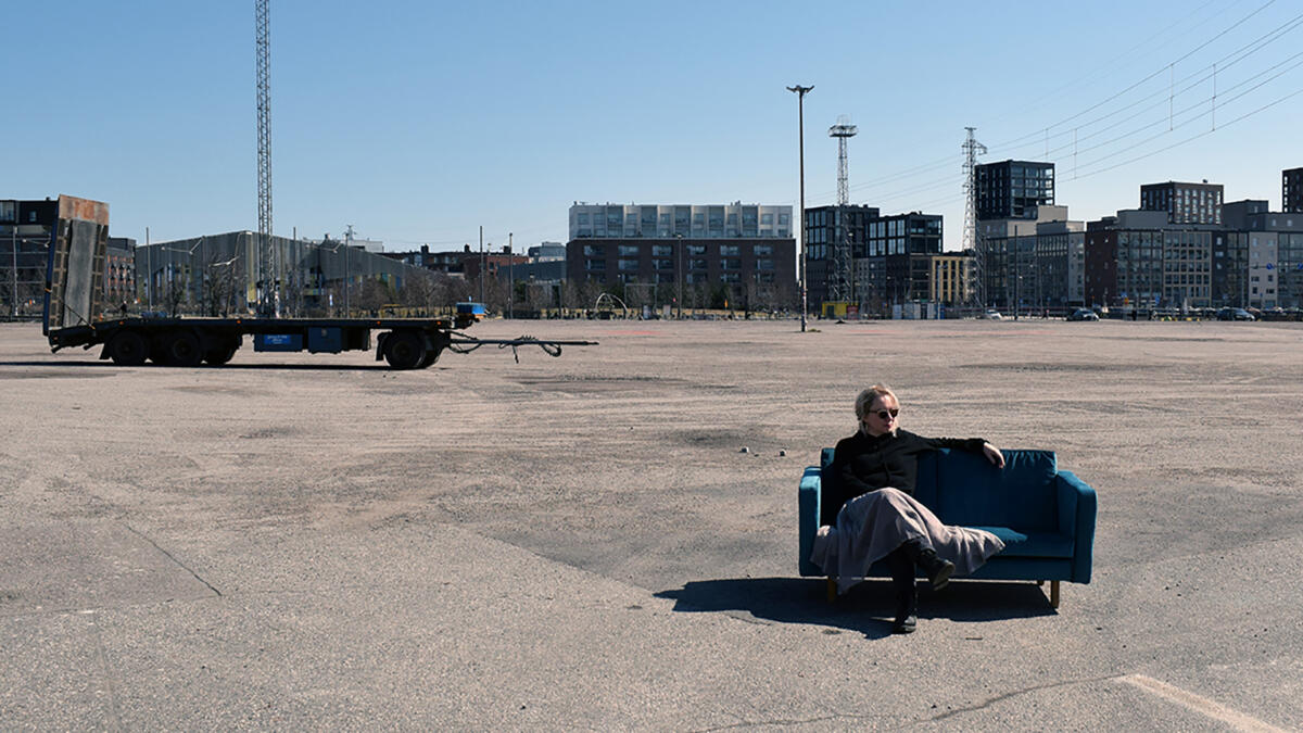 Yksi artikkelikokoelman kirjoittajista on taiteilija-tutkija Pilvi Porkola. Keväällä 2024 hän järjesti keskustelusarjan, joka tapahtui sohvalla eri puolilla Helsinkiä. Kuva: Salla Salin
