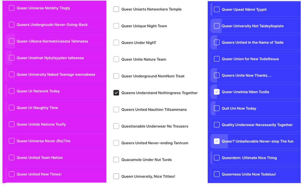 The name has potential to mean anything, yet it means nothing. The meanings are reflective of the liminality distinctive to everything queer: they exist between boundaries and categories, escape singular definitions, and offer room for different methods of interpretation.