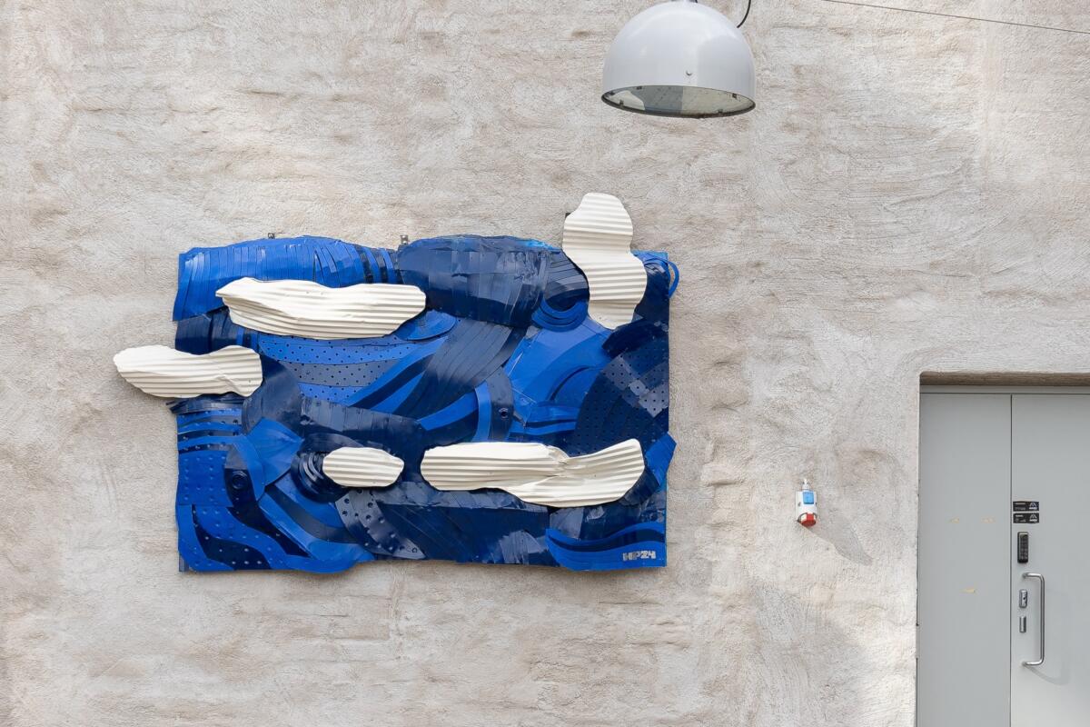 The Mylly building on the University of the Arts’ Sörnäinen campus has welcomed a new work of art to its walls: a sculpture purchased for the Academy of Fine Arts’ art collection, Pala taivasta (A Piece of Sky), has been installed on the outside wall of the courtyard. The artist, Hertta Puhakka, is a second-year student at the Academy of Fine Arts, and the sculpture was first exhibited in the course exhibition Out – Back in spring 2024.