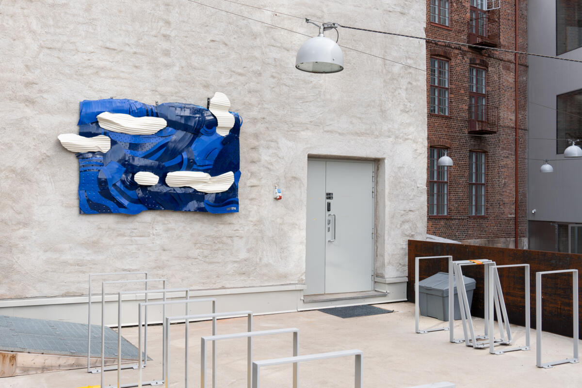 The Mylly building on the University of the Arts’ Sörnäinen campus has welcomed a new work of art to its walls: a sculpture purchased for the Academy of Fine Arts’ art collection, Pala taivasta (A Piece of Sky), has been installed on the outside wall of the courtyard. The artist, Hertta Puhakka, is a second-year student at the Academy of Fine Arts, and the sculpture was first exhibited in the course exhibition Out – Back in spring 2024.