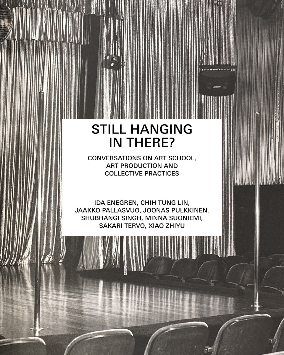 Still hanging in there? is a series of three conversations that investigate the topics of art school, art production, and collective practices. The conversations, conducted by Xiao Zhiyu and involving eight speakers active in the Helsinki artistic context, will be held in English and open to the active participation of the public.