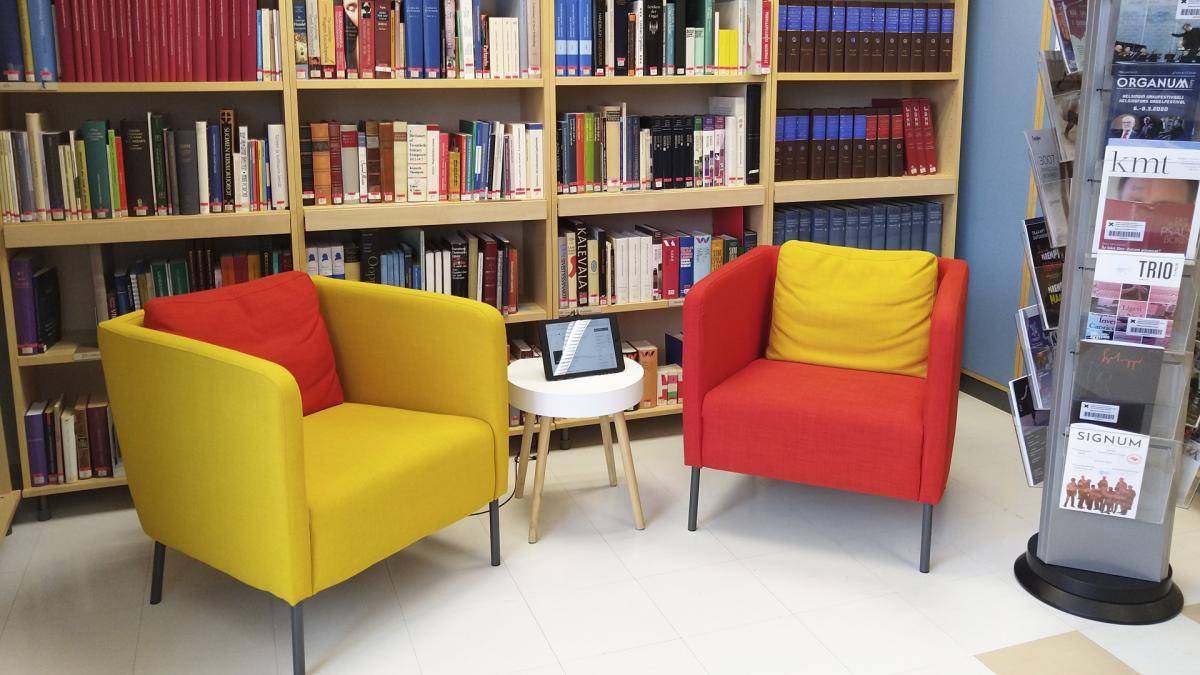 The wide-ranging music library features materials relating to, for example, church music, dance, theatre, and choirs. Materials relating to orchestras are also available to students, teachers and staff.