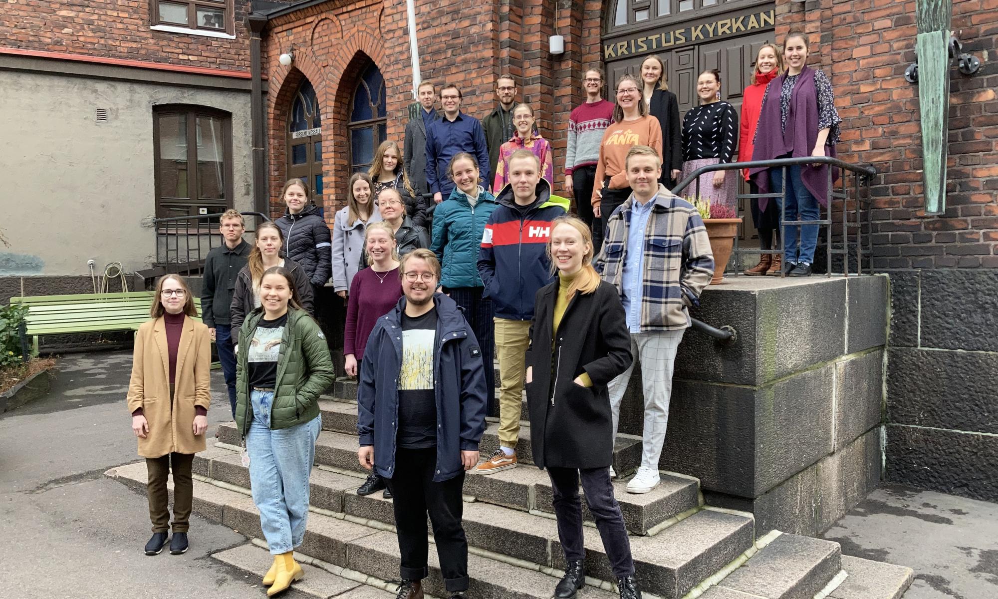 The church musicians’ choir at the Sibelius Academy of Uniarts Helsinki is a training choir for choral conducting students. Students from a variety of departments, such as church music, music education, composition and music theory, different instruments and the Open University, sing in the choir and conduct it. The choir consists of students who are completing their first, second or third year studies in choral conducting under Jani Sivén, lecturer of choral conducting, and Anna Nora, teacher of choral conducting, as well as visiting lecturers and teachers. The repertoire consists of choir music from different centuries practised in the choral conducting studies.