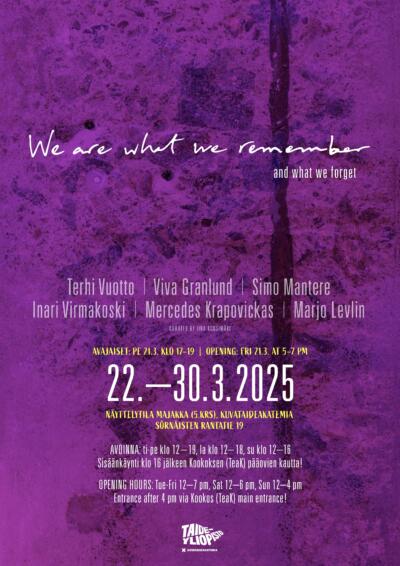 Tältä sivulta löydät menneet, käynnissä olevat ja tulevat Kuvataideakatemian näyttelyt uusimmasta vanhimpaan.