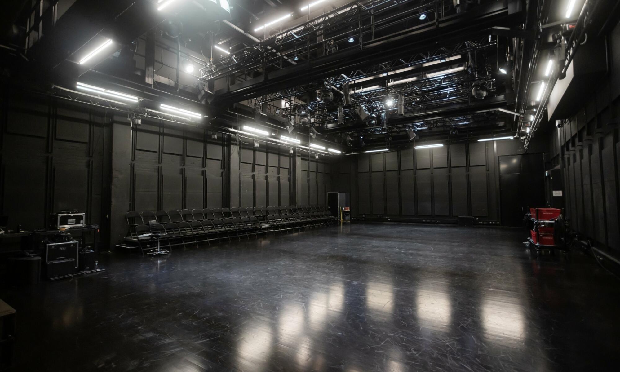 Tilaa kiertävät verhokiskot ja se voidaan ympäröidä mustilla tai valkoisille valoa läpäisemättömillä palosuojatuilla molton-kankailla. Tilaan voi tuoda tarvittaessa muunneltavia katsomo- ja näyttämörakenteita (Nivoflex ja Stageright). Tilassa on puinen joustolattia.