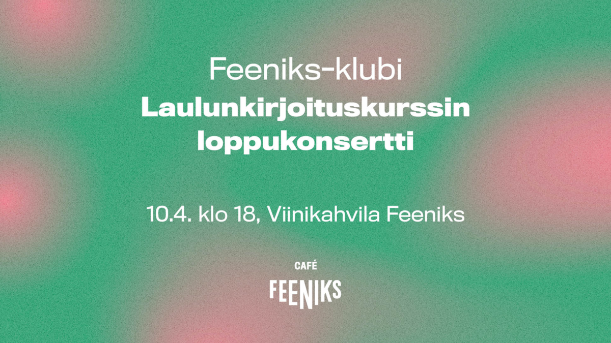 Taideyliopiston Avoimen kampuksen vuoden kestävän laulunkirjoituskurssin osallistujat esiintyvät loppukonsertissa 10.4. Feeniks-klubilla klo 18. Ilta tarjoaa lukuisia eri musiikkityylejä runsain indie-vivahtein kokoonpanojen vaihtuessa sooloista duoihin.