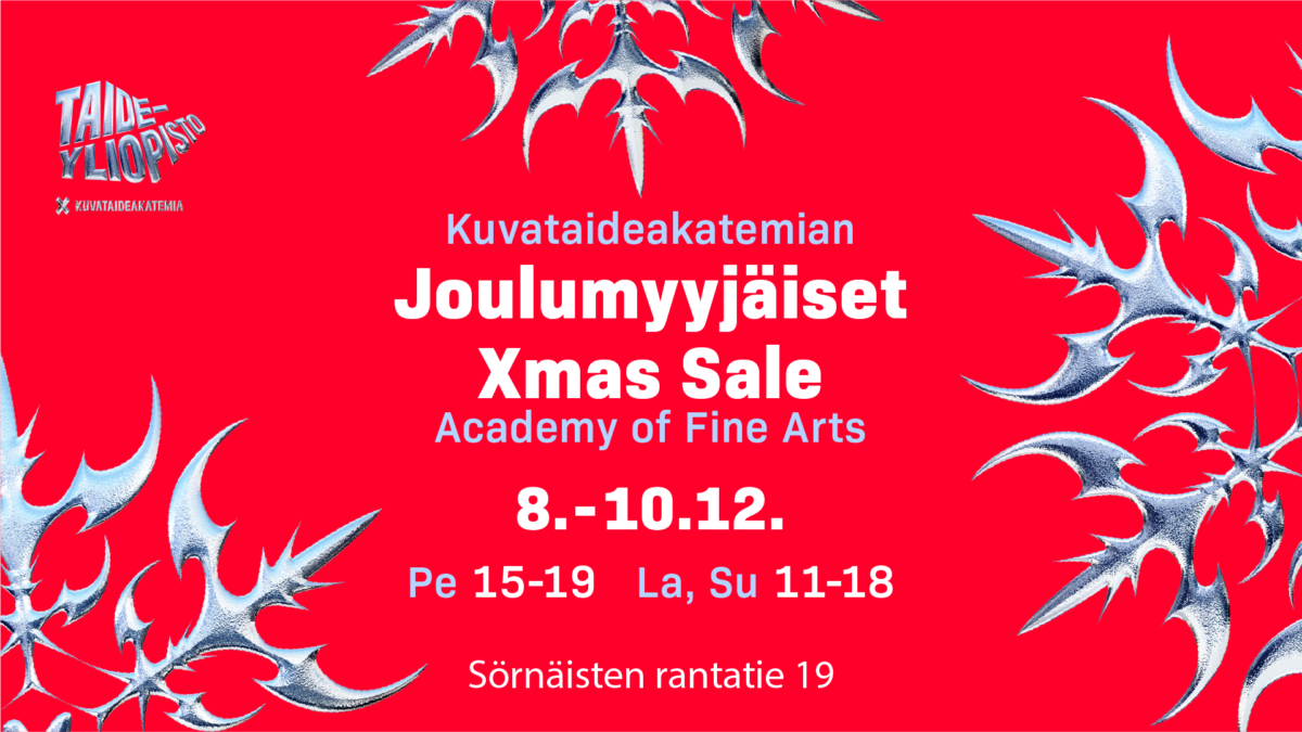 Taideyliopiston Kuvataideakatemian opiskelijoiden jokavuotisista taidemyyjäisistä löydät ainutkertaista taidetta itsellesi tai taiteen ystävälle. Myynnissä on niin suuria kuin pieniäkin taideteoksia: maalauksia, veistoksia, taidegrafiikkaa, piirustuksia, valokuvateoksia.