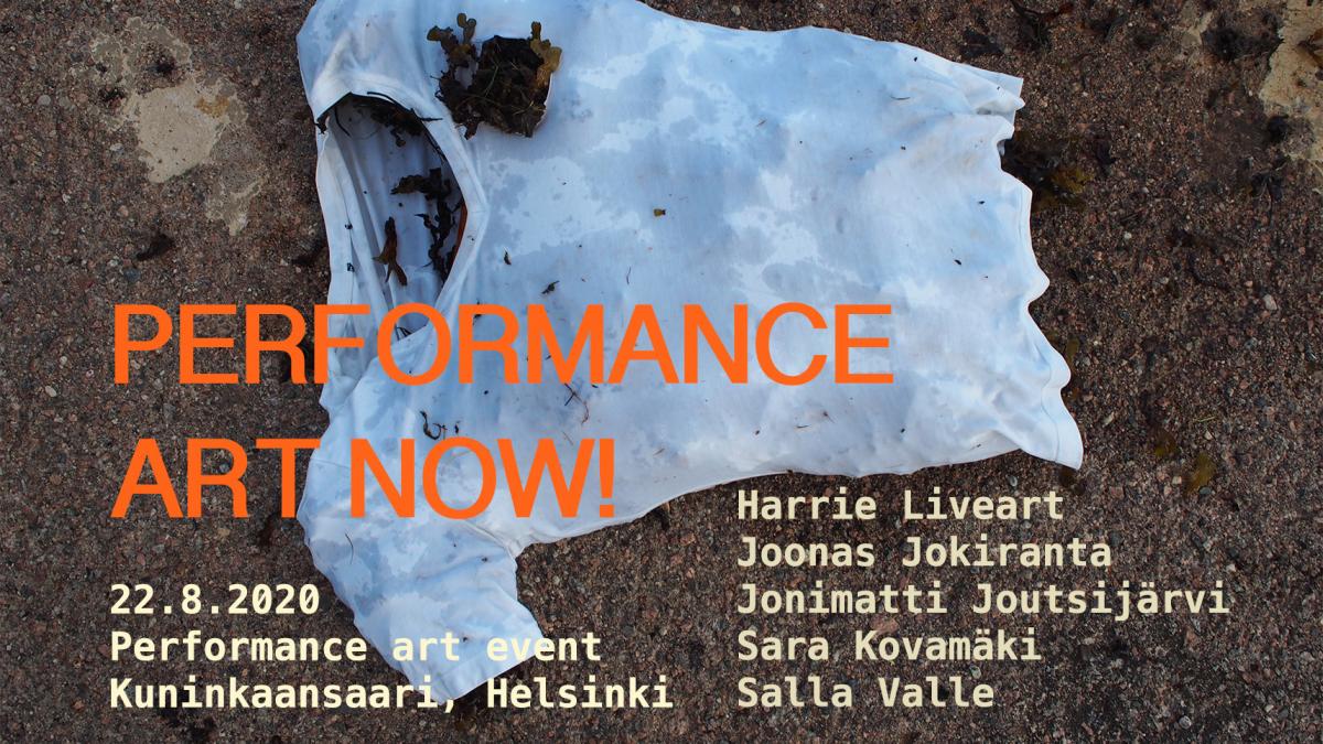 Performance art now! on performanssitaiteen tapahtuma ja yhteinen matka. Se on kokemus saaresta sellaisena kuin se on nyt, hetkenä muutoksen kynnyksellä. Saari on tila, jossa tavallista elämän piiriään voi katsoa etäisyyden päästä. Tai voi kääntää katseensa toiseen suuntaan ja katsoa itse saarta tai avomerta sen takana. Performanssi voi kaapata esityksen muodon ja kurkottaa tilaan ja halkeamiin, joissa sen liitokset ja muoto murtuvat. Esiin työntyvät käsittämättömyydet, käsitteet, kädet…
